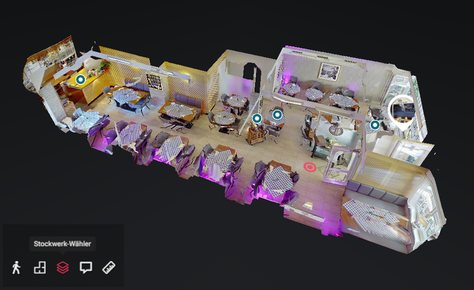 In einer Puppenhaus-Ansicht können verschiedene Etagen, Räume und Bereiche des Ortes visualisiert werden. Sie haben die Möglichkeit das Puppenhaus zu drehen, zu zoomen und zu navigieren, um einen umfassenden Überblick zu erhalten. Es ermöglicht eine einfache Navigation zwischen den verschiedenen Räumen und Etagen, indem Sie auf bestimmte Bereiche klicken oder diese auswählen.