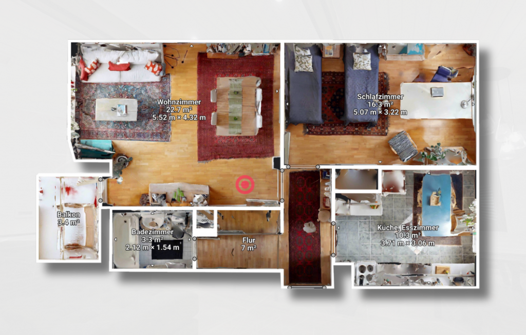 Ein virtueller Rundgang ist viel mehr als nur ein Foto oder ein Video. Es handelt sich um eine digitale Simulation eines Ortes oder einer Umgebung, die es dem Betrachter ermöglicht, sich frei im Gebäude zu bewegen und Räume interaktiv zu erkunden.